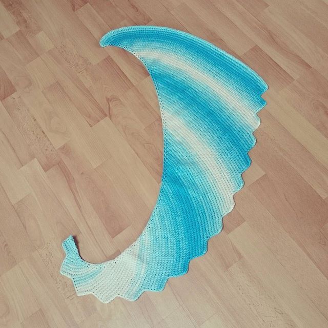 Mein Geschenk ist ein Drachenschal nach der Anleitung von Veronika Hug (die Anleitung findet ihr bei YouTube). Er ist tunesisch gehäkelt und besteht aus der Wolle Arona Batik von ONline Garne. Das ist ein Bändchengarn mit Farbverlauf, wodurch dieser tolle Effekt zustande kommt. Das Muster ist das Grundmuster im tunesischen Häkeln. Durch diese Technik entsteht ein recht dichtes Maschenbild, was besonders gut für Winterschals geeignet ist.
